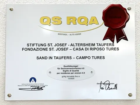Das Altersheim Stiftung St. Josef nimmt schon seit Jahren am RQA (relevante Qualitätskriterien in der Altenarbeit) teil. Das Qualitätssiegel RQA ist ein Instrument, welches anhand von relevanten und für Südtirol spezifischen Qualitätskriterien die Qualität der Seniorenwohnheime misst und danach besiegelt.